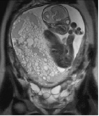 При полном пузырном заносе плод не визуализируется. При частичном ПЗ могут определяться плодовые структуры или нормально развивающийся плод (в этом случае кистозно изменённую структуру будет иметь небольшая часть плаценты).