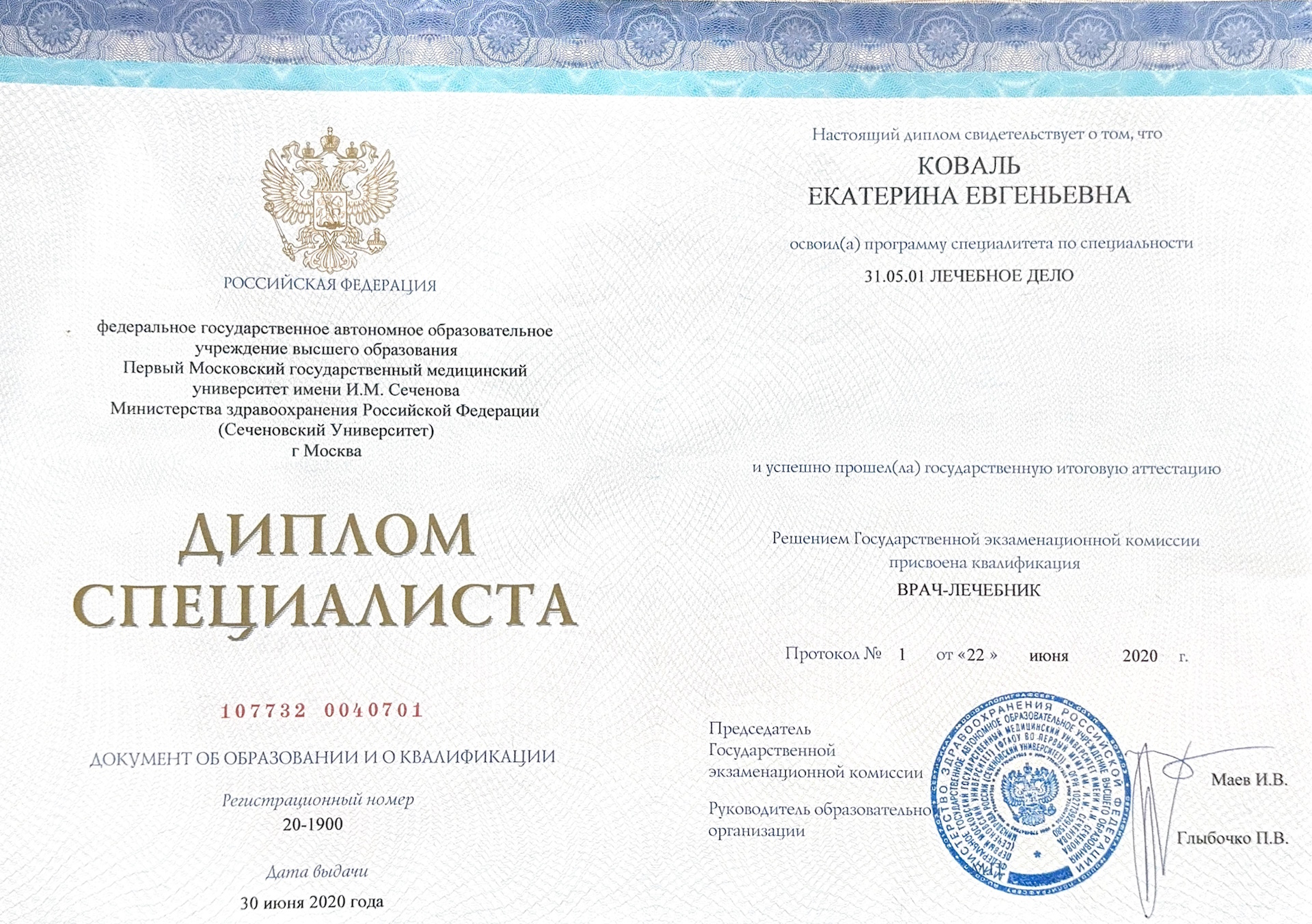 ФГАОУ ВО Первый Московский государственный медицинский университет им. И.М. Сеченова, 2013-2020 г., Лечебное дело