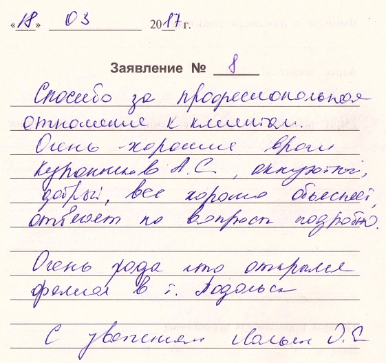 Спасибо за профессиональное отношение к клиентам. Очень хорошие врачи, Курганников А.С. аккуратный, добрый, все хорошо объясняет, отвечает на вопросы подробно. Очень рада, что открылся филиал в г. Подольск