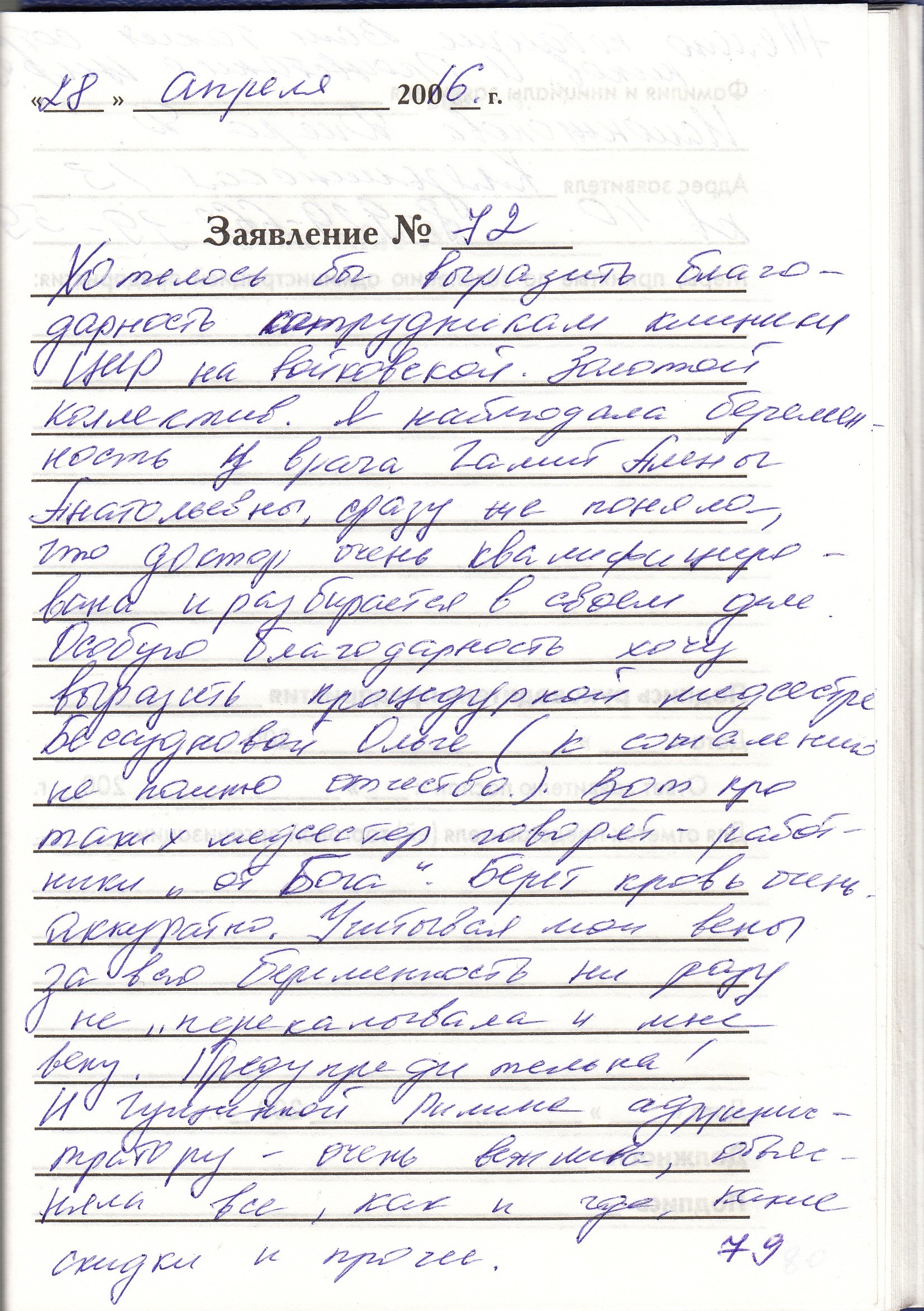 Хочу выразить благодарность врачу Серёгиной Анне Андреевне.С самого первого дня знакомства Вы вселили в меня оптимизм,чем радуете и по сей день!Спасибо за профессиональную поддержу: ведь до наступления желанной беременности меня преследовали неудачи.И спасибо за сыночка: именно благодаря Вашей поддержке (моральной,профессиональной) все получилось.Желаю Вам всех благ на Вашем пути!Огромная благодарность Гузову Игорю Ивановичу за возможность пользоваться высоколассными услугами центра.Спасибо!